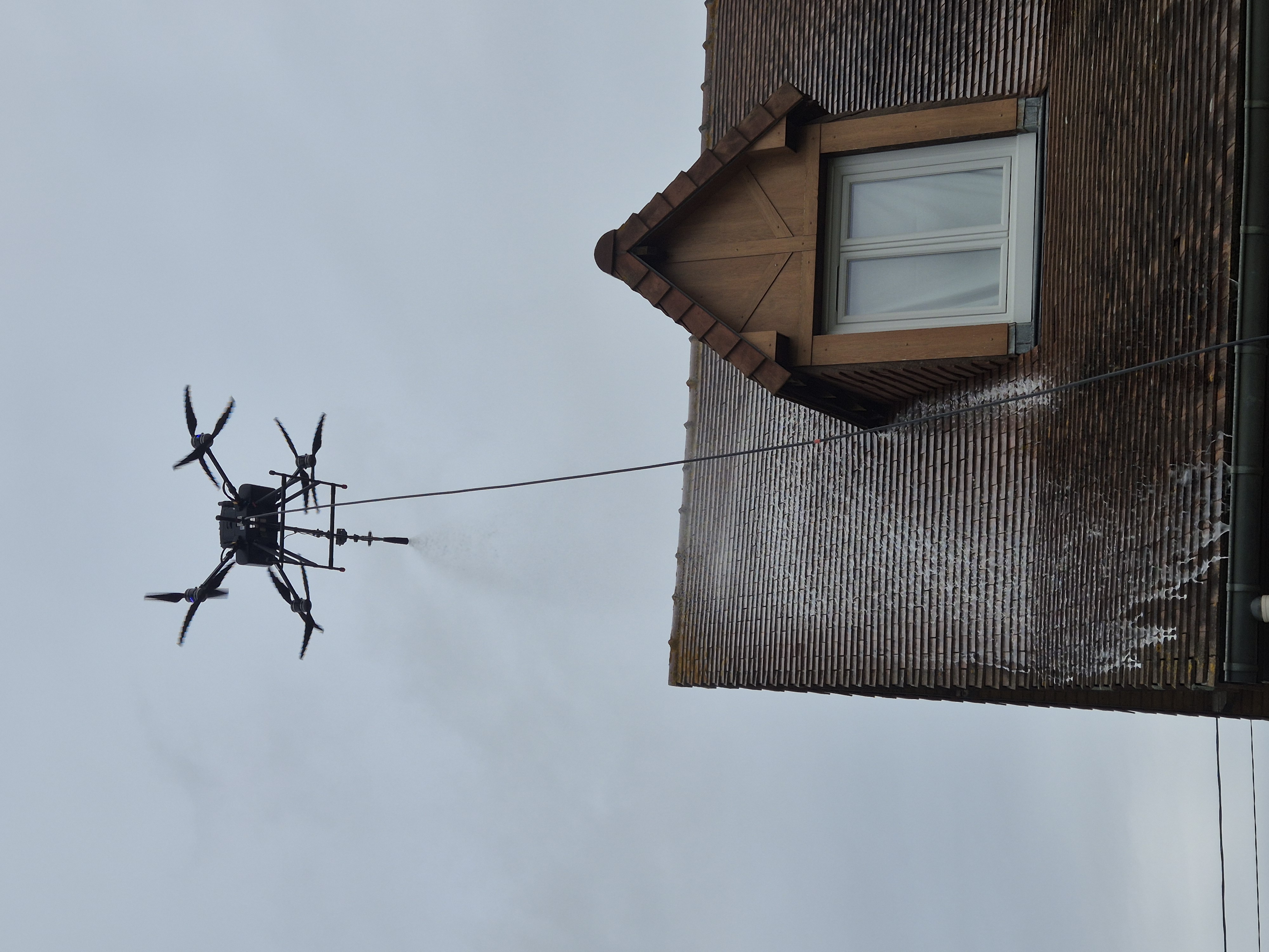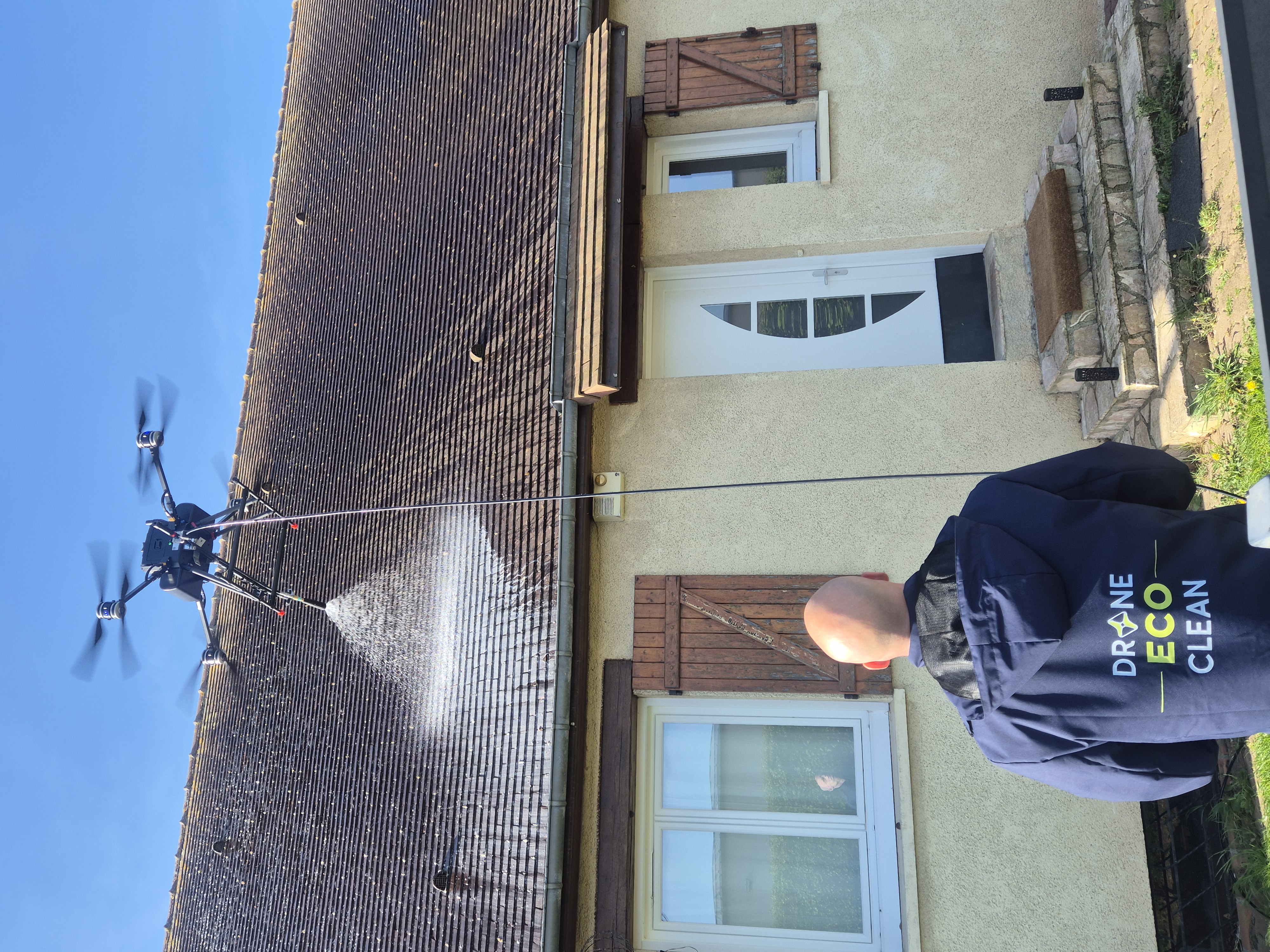 Intervention rapide et sécurisée sur toitures, façades et panneaux solaires grâce au drone, avec des produits éco-responsables. Sans nacelle, sans échafaudage, sans risque.